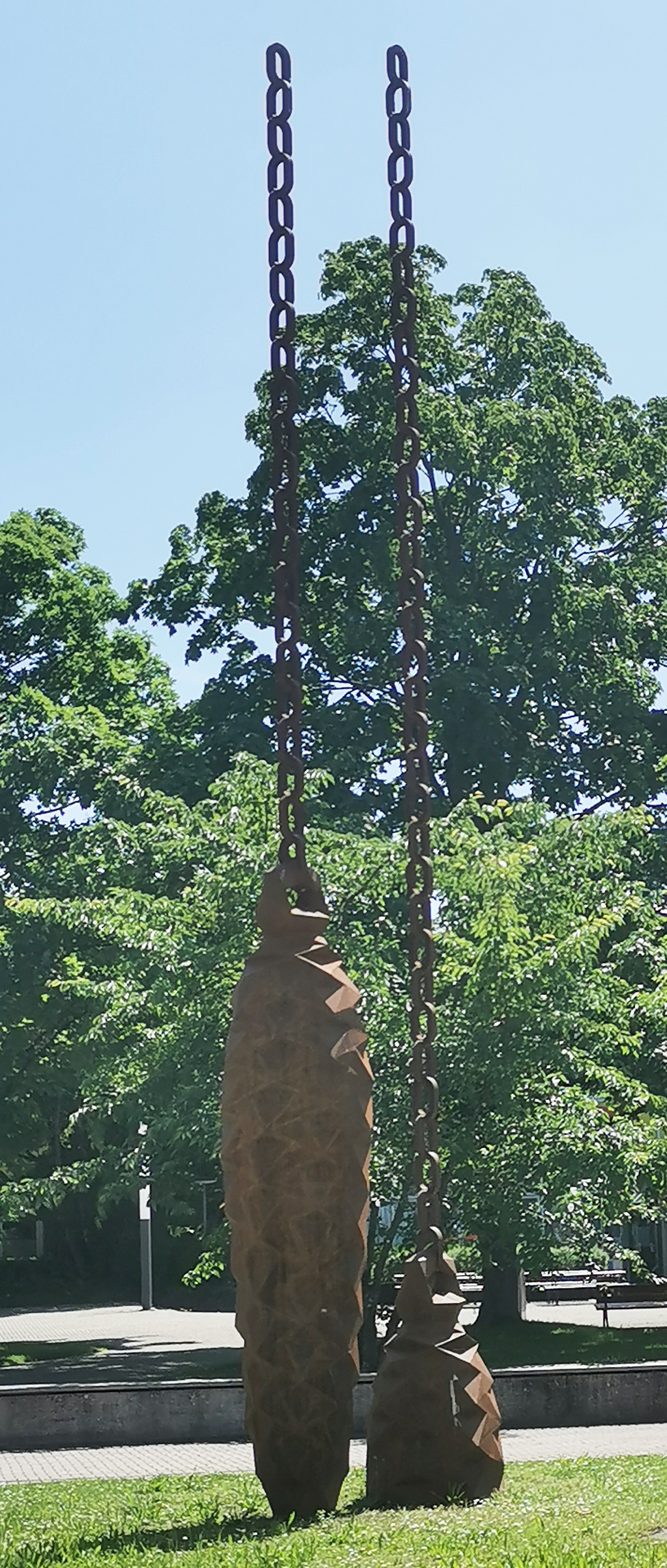 Die Tannenzapfen-Skulptur von Stefan Strumbel steht vor der Mensa der Hochschule Offenburg und verbindet Kunst mit Wissenschaft. Die überdimensionalen Tannenzapfen aus Cortenstahl symbolisieren das Spannungsfeld zwischen Wandel und Beständigkeit, inspiriert von Albert Einsteins Zitat "Vorstellungskraft ist wichtiger als Wissen". Die Skulptur lädt dazu ein, über Zeit, Fortschritt und die Verbindung von Vergangenheit und Zukunft nachzudenken.